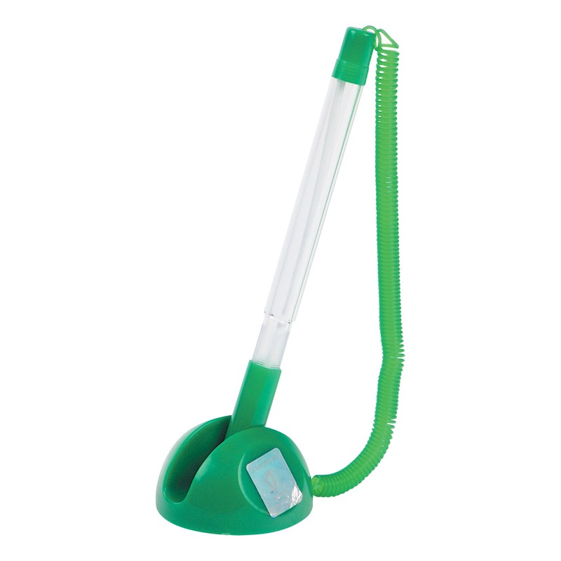 Многоразовая шариковая ручка с синим цветом чернил. Модель в прозрачном корпусе с деталями зеленого цвета специально разработана для офисов и различных учреждений: с одной стороны она крепится к пластиковой пружине, а с другой — к специальной подставке с липким основанием для установки на столах или тумбах. Ручка комплектуется сменным стержнем, толщина линии составляет 0,5 мм. Дополнительные стержни для ручки вы сможете найти во вкладке «Расходные материалы».