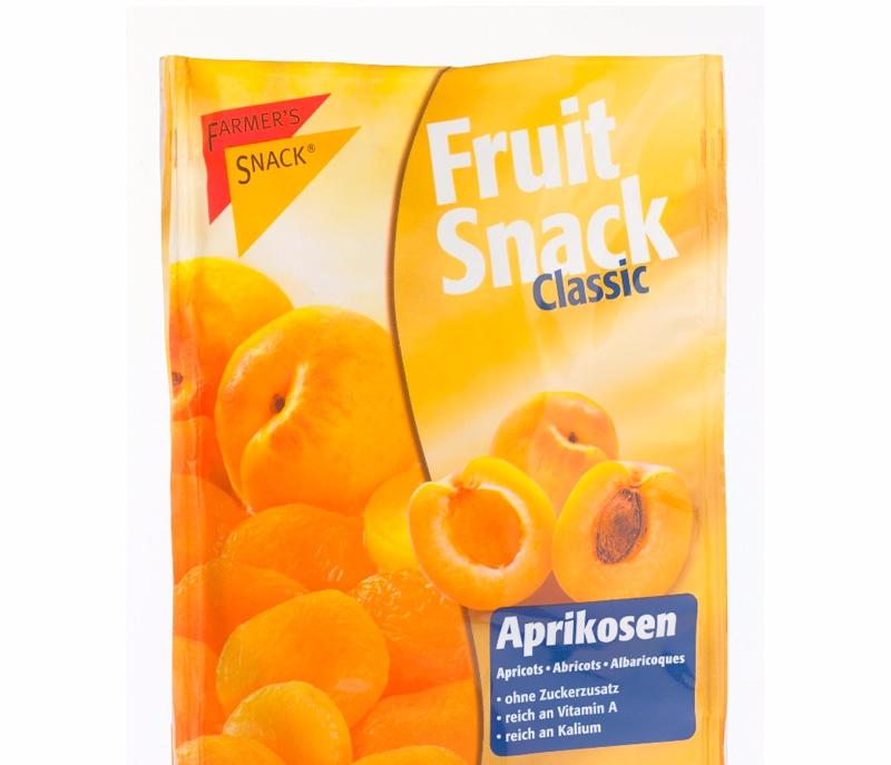 Курага Farmer’s snack. Упаковка включает 250 г высушенных половинок плодов абрикоса без косточек. Продукт не содержит ГМО, может храниться при температуре от +5 до +23 градусов Цельсия при относительной влажности не более 75%. Энергетическая ценность 100 г сушеных фруктов составляет 215 ккал. Курага полезна для сердечно-сосудистой системы, богата витаминами и минералами. Плоды рекомендуется мыть перед употреблением.