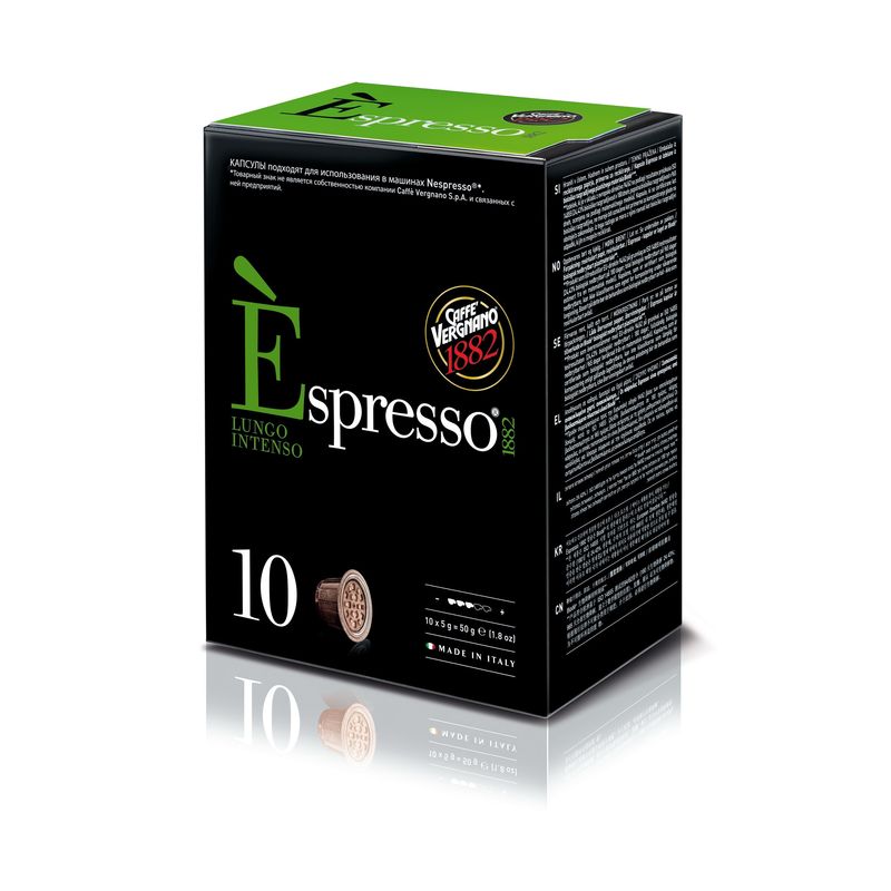 Капсулы для кофемашин Vergnano Espresso Lungo Intenso позволяют приготовить кофе с устойчивой, бронзовой пенкой. Готовый напиток обладает ароматом темного шоколада, характерным вкусом натурального кофе с устойчивым послевкусием жареного миндаля. Подходят для всех типов кофе-машин NESPRESSO. В каждом контейнере содержится 5 г жареного молотого кофе. В картонной коробке 10 капсул.