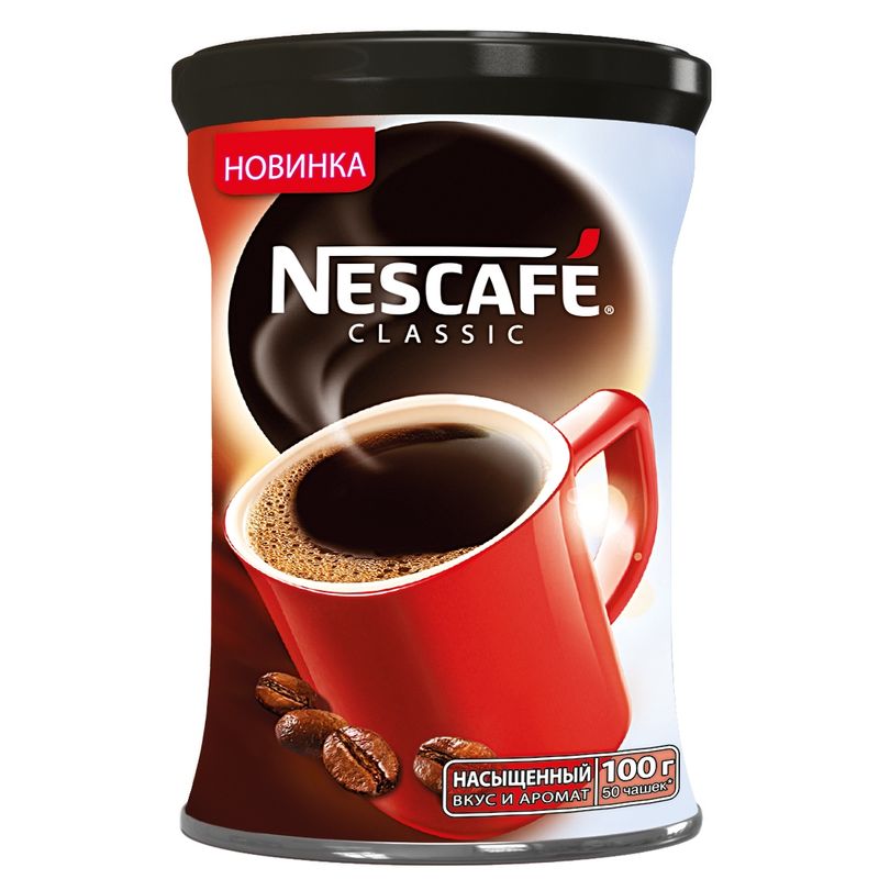 Растворимый кофе Nescafe Classic в гранулах, приготовленный из лучших сортов бразильского кофе. Обладает насыщенным ароматом и крепким горьковатым вкусом. Рецепт приготовления прост — достаточно положить в чашку одну чайную ложку и добавить горячую, но не кипящую воду. По желанию можно добавить сахар, молоко или сливки. Растворимый кофе Nescafe Classic поставляется в жестяной банке с плотной пластиковой крышкой. Вес — 100 г.