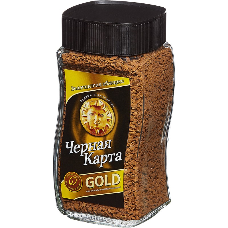 Натуральный растворимый сублимированный кофе «Черная карта» с крепким вкусом, насыщенным ароматом и легкой кислинкой. Изготовлен из 100% арабики. Рецепт приготовления прост — достаточно положить в чашку одну чайную ложку кофе и добавить горячую, но не кипящую воду. По желанию можно добавить сахар, молоко или сливки. Рекомендуемый способ приготовления: положите в чашку 1-2 чайные ложки кофе, добавьте горячей, но не кипящей воды, сахар и молоко добавьте по вкусу. Растворимый кофе «Черная карта» поставляется в стеклянной банке, вес — 200 г. Срок годности: 24 мес. Условия хранения: температура не выше 20 С и относительной влажности воздуха не более 75%. Производитель: ООО Штраус