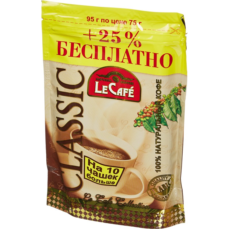 | Кофе Le Cafe Classic растворимый сублимированный пакет,95г |