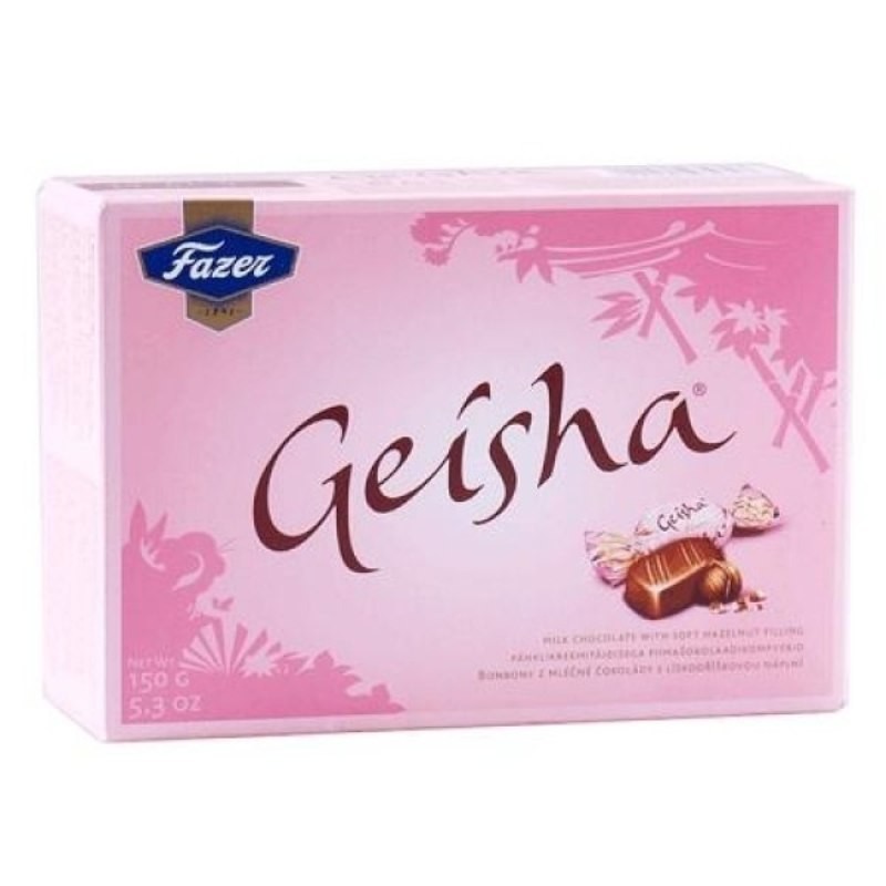 Конфеты Geisha из молочного шоколада с нежной начинкой из тертого ореха. Подходят в качестве десерта к чаю или кофе. Набор представлен в картонной коробке с фирменным логотипом. Вес −150 г.