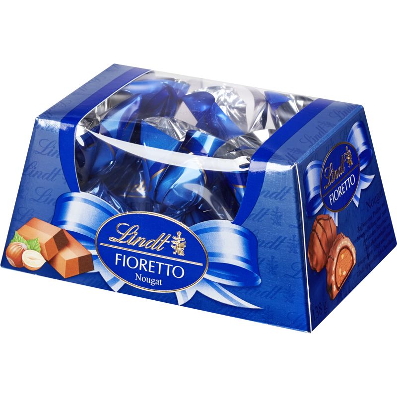 Название торговой марки Lindt Торговая марка Lindt Вес изделия нетто 138 г Тип упаковки картонная упаковка Схема вложения 8 Наполнитель нуга Вид шоколада молочный Вид конфет шоколадные конфеты Размер упаковки 99х167х71 мм Артикул 334455 -