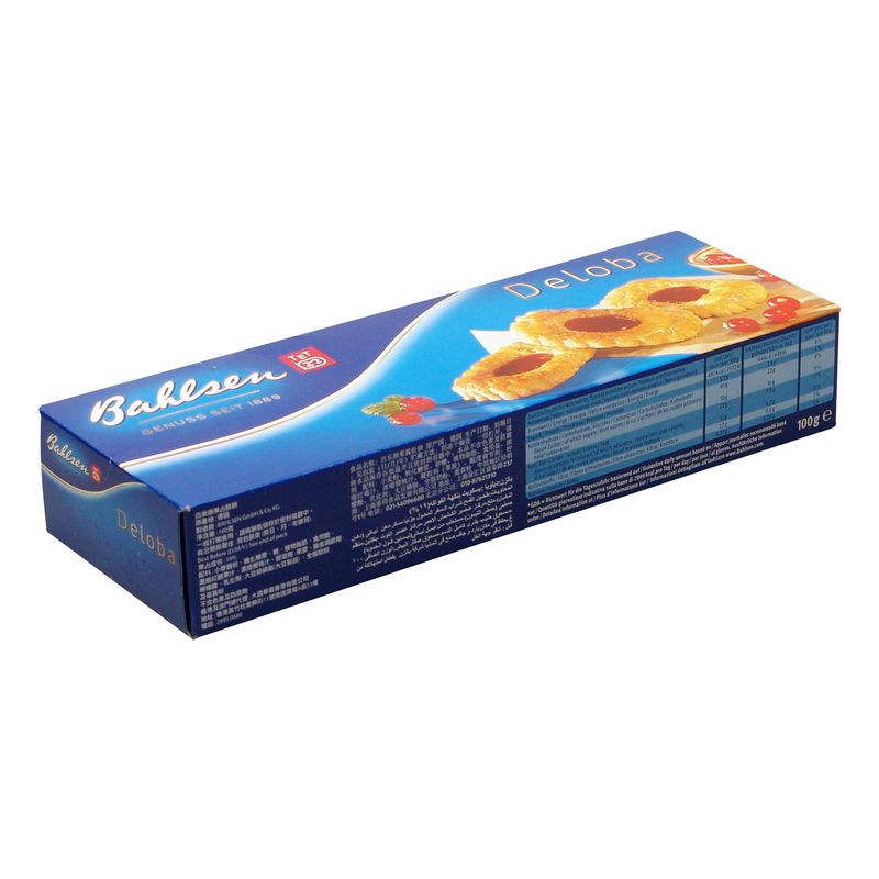 Bahlsen Delice — сухое хрустящее печенье с наполнителем из красной смородины. Изготовлено из слоеного теста. Расфасовано в пачки по 100 гр., в одной коробке 12 пачек.