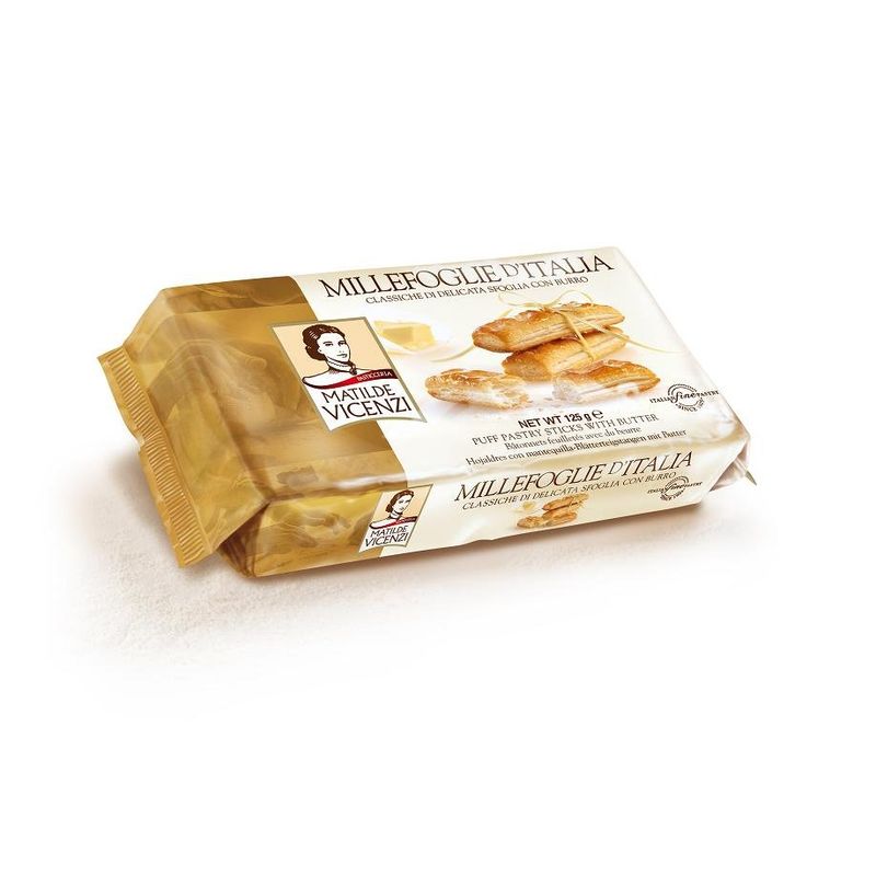 Название торговой марки Vicenzi Торговая марка Vicenzi Вес изделия нетто 125 г Тип упаковки мягкая упаковка Схема вложения 16 Наполнитель без наполнителя Глазурь нет Вид печенья слоеное Артикул 228641 -