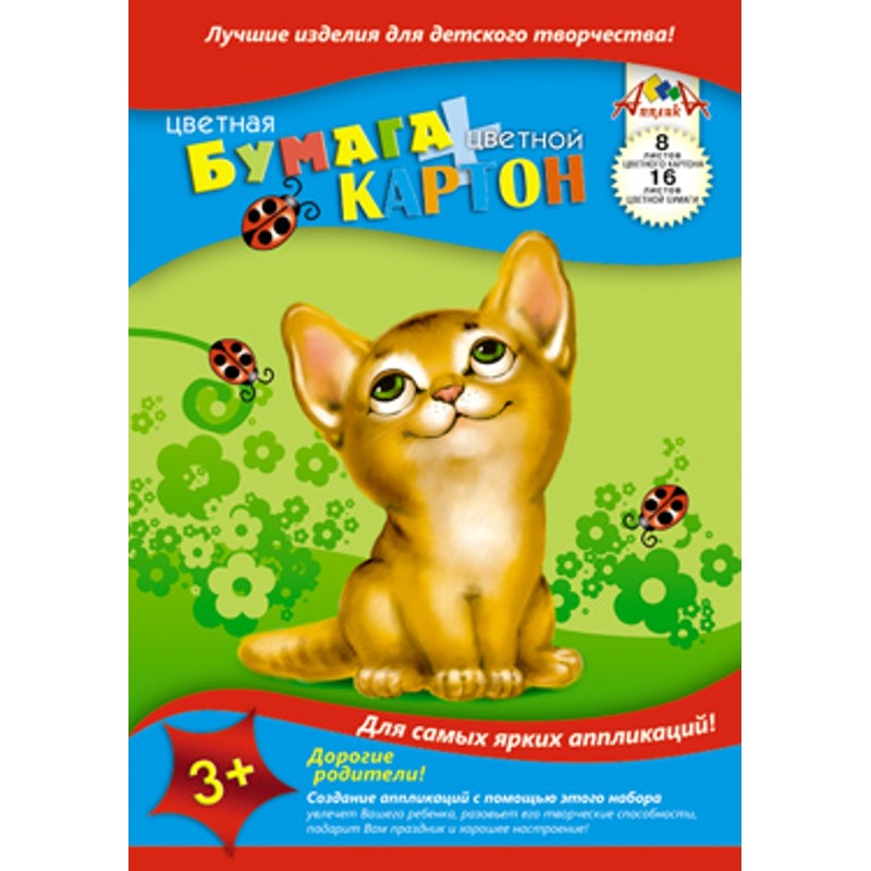 Набор для творчества (цветная бумага и цветной картон, формат А4) рассчитан на детей в возрасте от трех лет. Обложка с лакированным покрытием изготовлена из мелованного картона, дизайн в ассортименте. Внутренний блок состоит из 8 листов картона плотностью 230 г/кв.м (8 цветов) и 16 листов матовой бумаги (8 цветов).