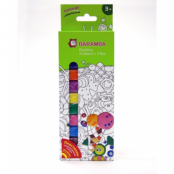 Пластилин Baramba, благодаря растительной основе, безопасен для здоровья ребенка. Не пачкает руки, не прилипает, хорошо очищается с одежды. В течение 5 мин пластилин остается мягким. Поставляется в картонной коробке, на которую нанесена раскраска для рисования пластилином. Набор содержит 10 брусков ярких цветов и один брусок белого, с его помощью можно создать новые цвета.