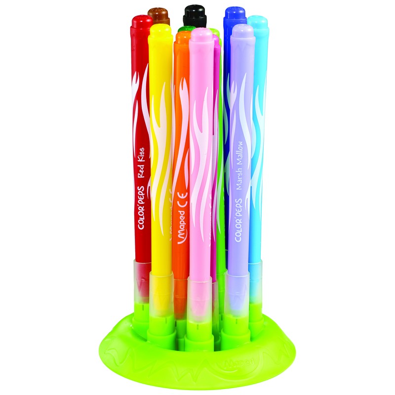 Фломастеры Jungle Innovation, 12 цветов. Красочная упаковка выполнена из цветного картона, имеется прозрачное окошко. В наборе — 12 фломастеров с длиной корпуса 140 мм и толщиной линии письма — 2 мм. В комплекте — эксклюзивная гибкая подставка, с внедренными в нее колпачками, которые таким образом не смогут потеряться. Фломастеры имеют яркие насыщенные цвета, легко смываются с кожи и тканей. Конусовидный стержень заблокирован и даже при сильном нажатии сохраняет форму.
