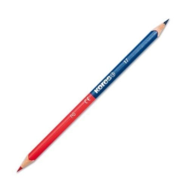 Двусторонний цветной карандаш Kores, красный и синий. Трехгранная форма корпуса снижает усталость и придает дополнительный комфорт. Длина — 17,5 см, диаметр — 9 мм, толщина грифеля составляет 2,9 мм. Стоимость указана за один карандаш.