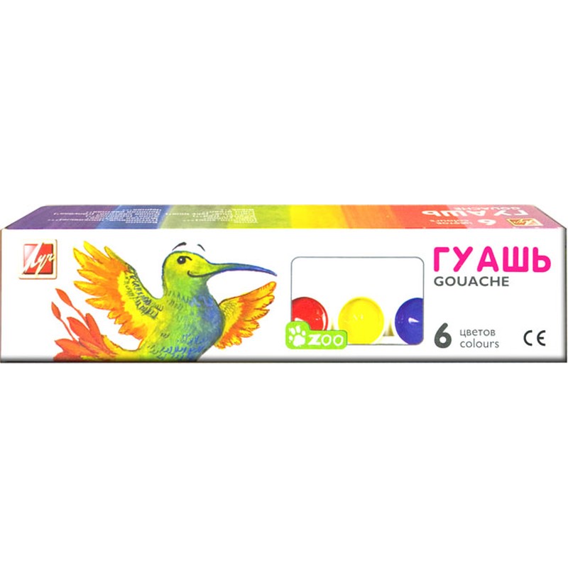 В набор Zoo входят гуашевые краски 6 цветов. Блок-тара состоит из пластиковых баночек объемом 15 мл. Картонная упаковка. Гуашь подходит для детского творчества, при необходимости разбавляется водой, безвредна, быстро высыхает, легко смывается с рук и одежды.