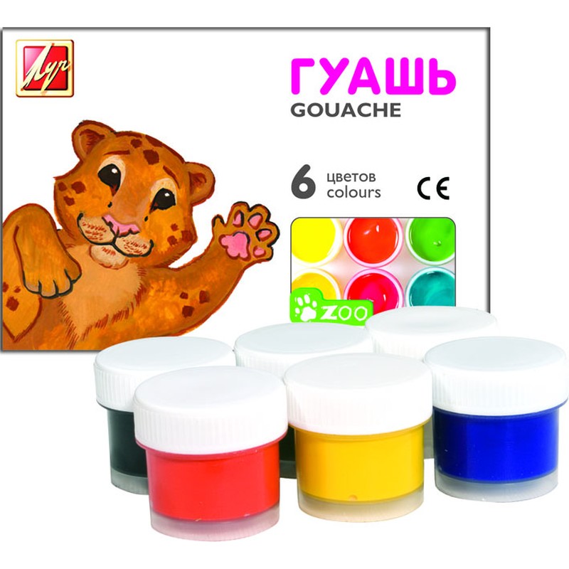 | Гуашь 6цв.,Луч ЗОО,банка 15 мл |
