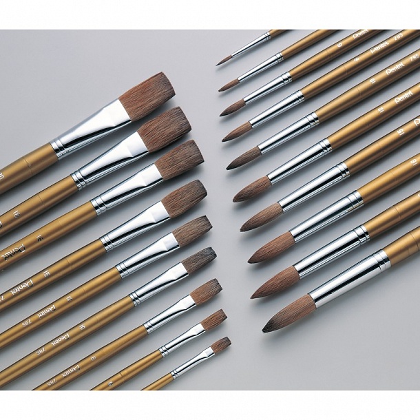 поэтому кисти из пони более плотные. Основное применение: акварель, гуашь, клей и косметические цели. Характеристики кистей пони Pentel: надежность, долговечность, обусловленные толщиной волоса. Кисти хорошо впитывают и отдают краску. Удобная, покрытая лаком пластиковая ручка. Кисть закруглена на пучке, чтобы вода стекала по центру. Высокое качество. Не оставляет ворса при работе.