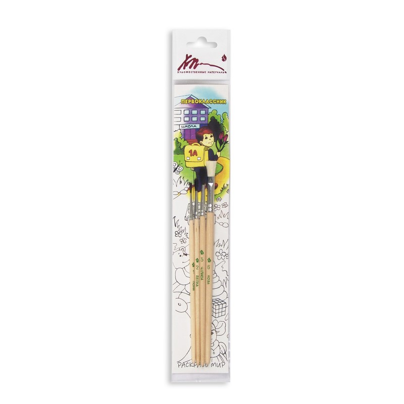 Набор кистей «Первоклассник» предназначен для детского творчества. В состав набора входит кисть плоская № 6 (коза), кисть круглая № 2(черно-бурая лиса), кисть круглая № 1 (пони), кисть круглая № 3 (черно-бурая лиса). Кисточки изготовлены из меха и обеспечивают равномерное плотное распределение краски по поверхности бумаги или ткани.