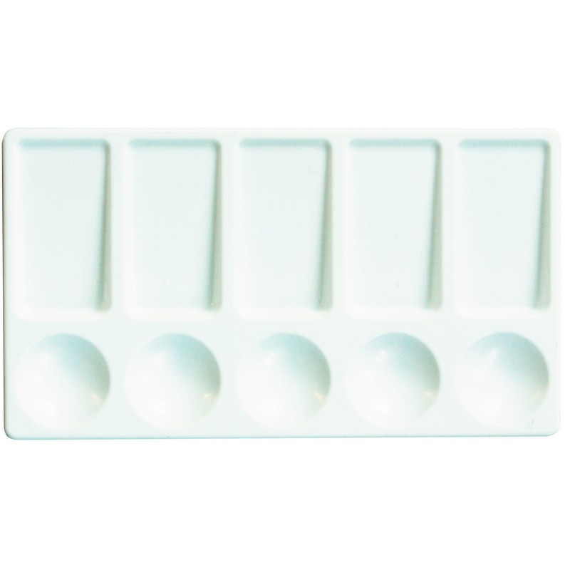 Палитра из пластмассы для смешивания красок, прямоугольной формы для стационарного размещения для столе. Размер палитры: 200х110 мм