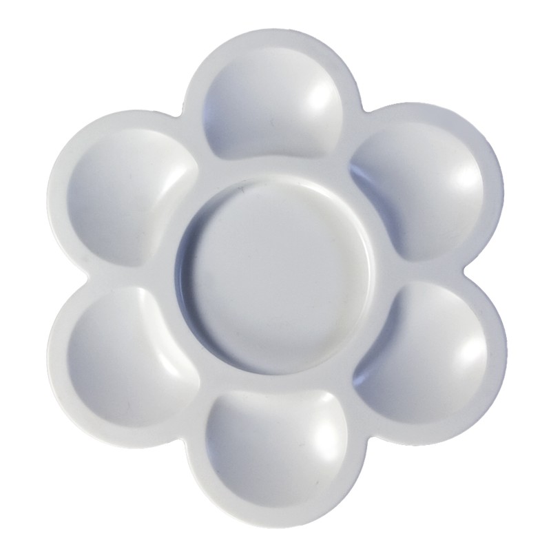 Палитра предназначена для смешивание краски, удобная компактная, с детским дизайном в виде цветочка из пластмассы.