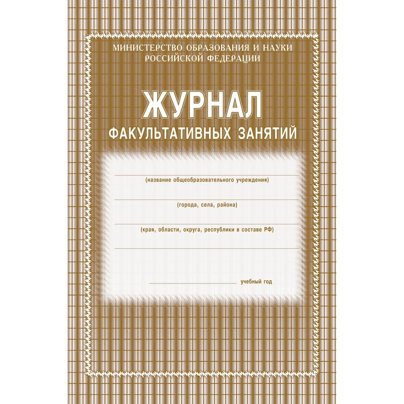 Журнал предназначен для учета работы факультативных групп и ведется в основных и средних общеобразовательных школах по каждому факультативу отдельно. Формат А4. Обложка выполнена в строгом стиле из мягкой цветной офсетной бумаги. Внутренний блок изготовлен из газетной бумаги, включает 48 страниц. Журнал построен по образцу классного журнала (ФИО ученика, колонки для отметок и т.д.).