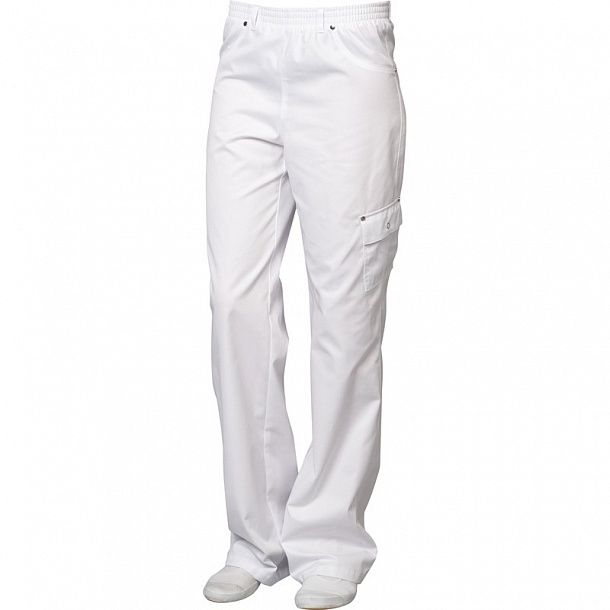 Брюки женские прямого силуэта зауженные к низу с имитацией карманов на передних половинках, с 6 шлевками. По талии брюки стянуты широкой эластичной лентой, простроченной тремя параллельными строчками.