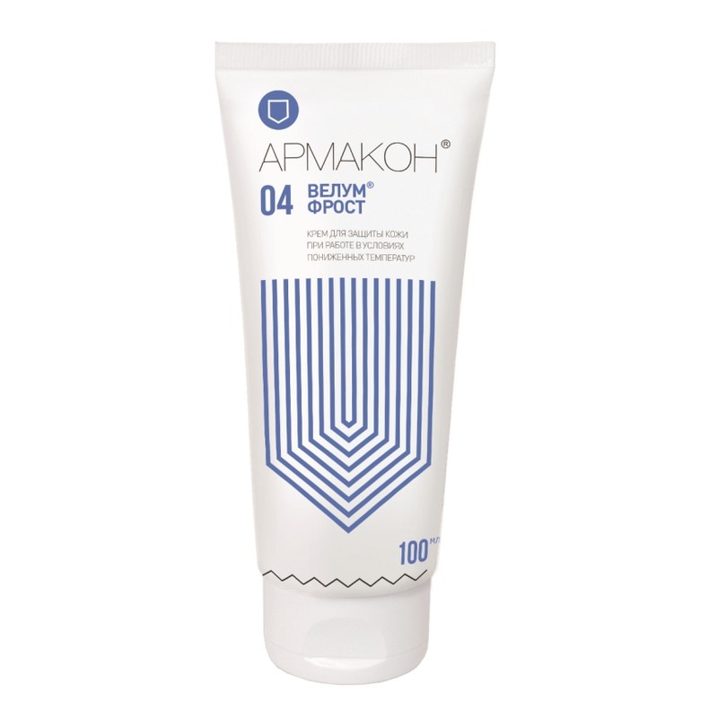 Профессиональный крем «Велум Фрост» служит для защиты кожи при низких температурах. Незаменим для тех, кто работает на открытом воздухе при морозе, ветре, снеге. Предотвращает растрескивание и покраснение кожи, заживляет микротрещины и раны, предотвращает кожные заболевания. Защитный крем не содержит воды и силиконов, включает масло ши, витамины. Гипоаллергенный. Наносится на лицо, руки, открытые участки тела и растирается. Крем поставляется в тубе объемом 100 мл.
